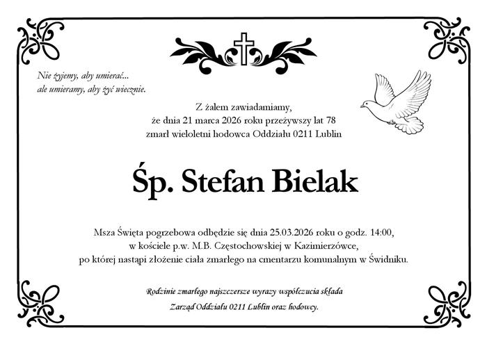 W imieniu wszystkich hodowców Oddziału 0211 Lublin składamy koledze Wiesławowi najszczersze wyrazy współczucia z powodu śmierci brata.